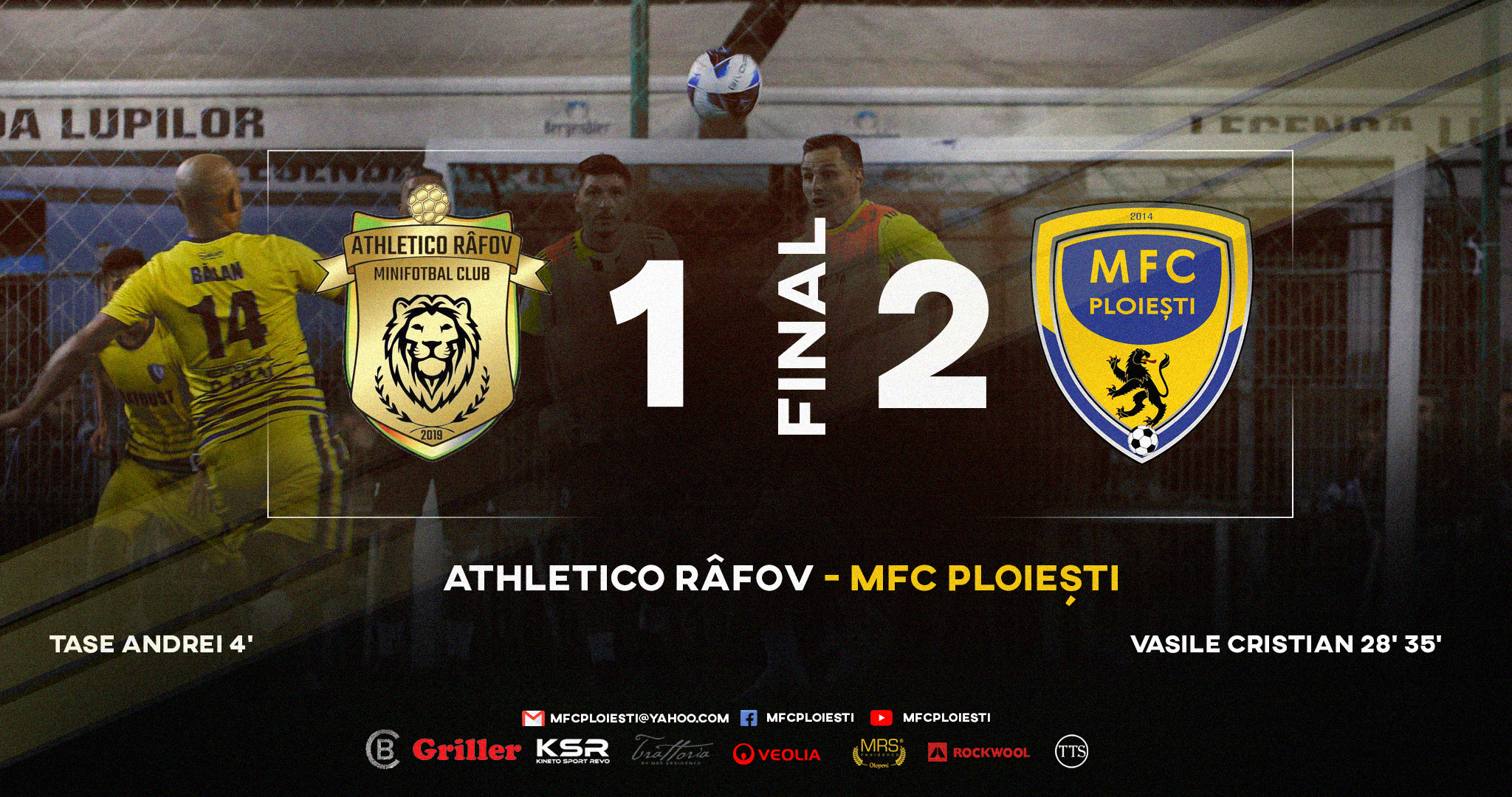 Luni, 24 octombrie 2022, pe terenul 1 al Bazei Sportive Kiru Sport Ploiești, cu incepere de la ora 21.15, MFC Ploiești a reeditat finala Cupei LMF Prahova intr-un meci care a contat pentru etapa cu numarul 7 a Ligii A MiniFotbal Prahova, acolo unde i-a avut ca adversari pe revelatia campionatului, Athetico Râfov, de care a trecut cu scorul de 2-1, grație golurilor marcate de Vasile Cristian!