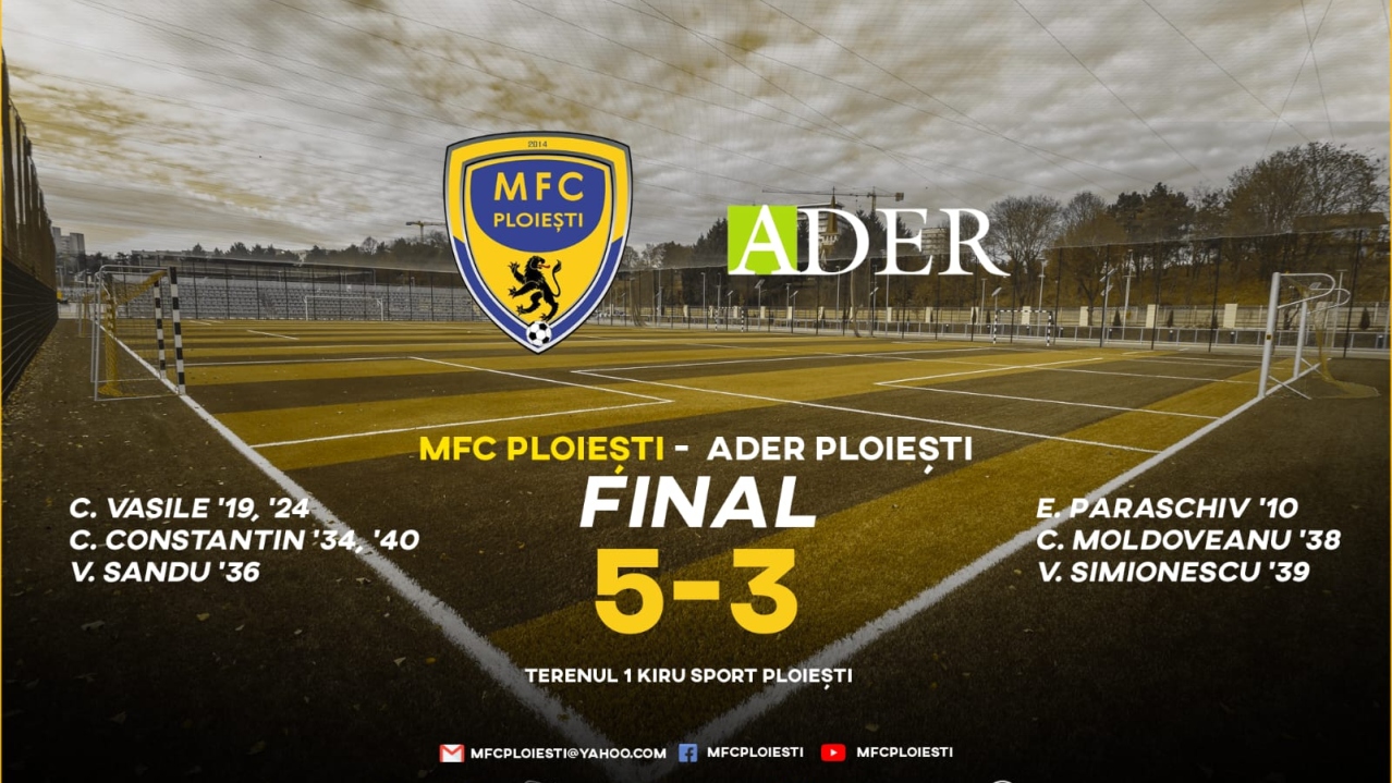 Miercuri, 23 februarie 2022, cu incepere de la ora 20.15, MFC Ploiești a întâlnit Ader Ploiești într-un meci care a contat pentru etapa 4 a Ligii A de Minifotbal din Prahova, competiție organizată sub egida Federatiei Române de Minifotbal,…