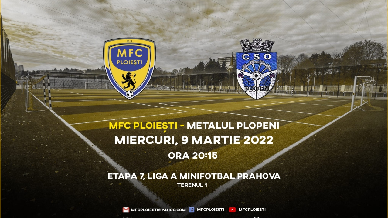 Miercuri, 9 martie 2022, MFC Ploiești întâlnește Metalul Plopeni intr-un meci care va conta pentru etapa 7 a Ligii A, din cadrul Campionatului Liga Mini Fotbal Prahova, organizată sub egida Federatiei Romane de Minifotbal. Partida va incepe de la ora…