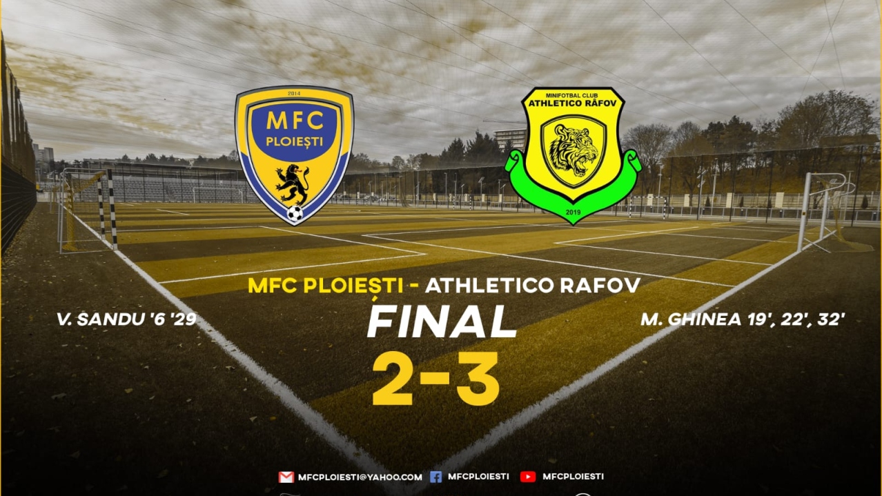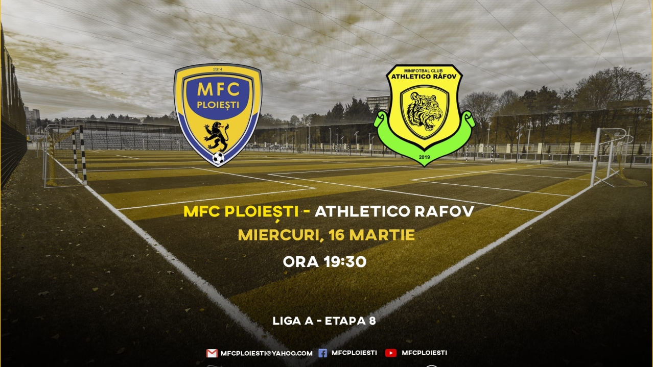 In cadrul etapei cu numărul 8 a Ligii A de Minifotbal din Prahova, MFC Ploiești a întâlnit, miercuri, 16 martie 2022, cu incepere de la ora 19.30, echipa Atheltico Rafov, partida ce s-a disputat pe cocheta Baza Sportivă Kiru…