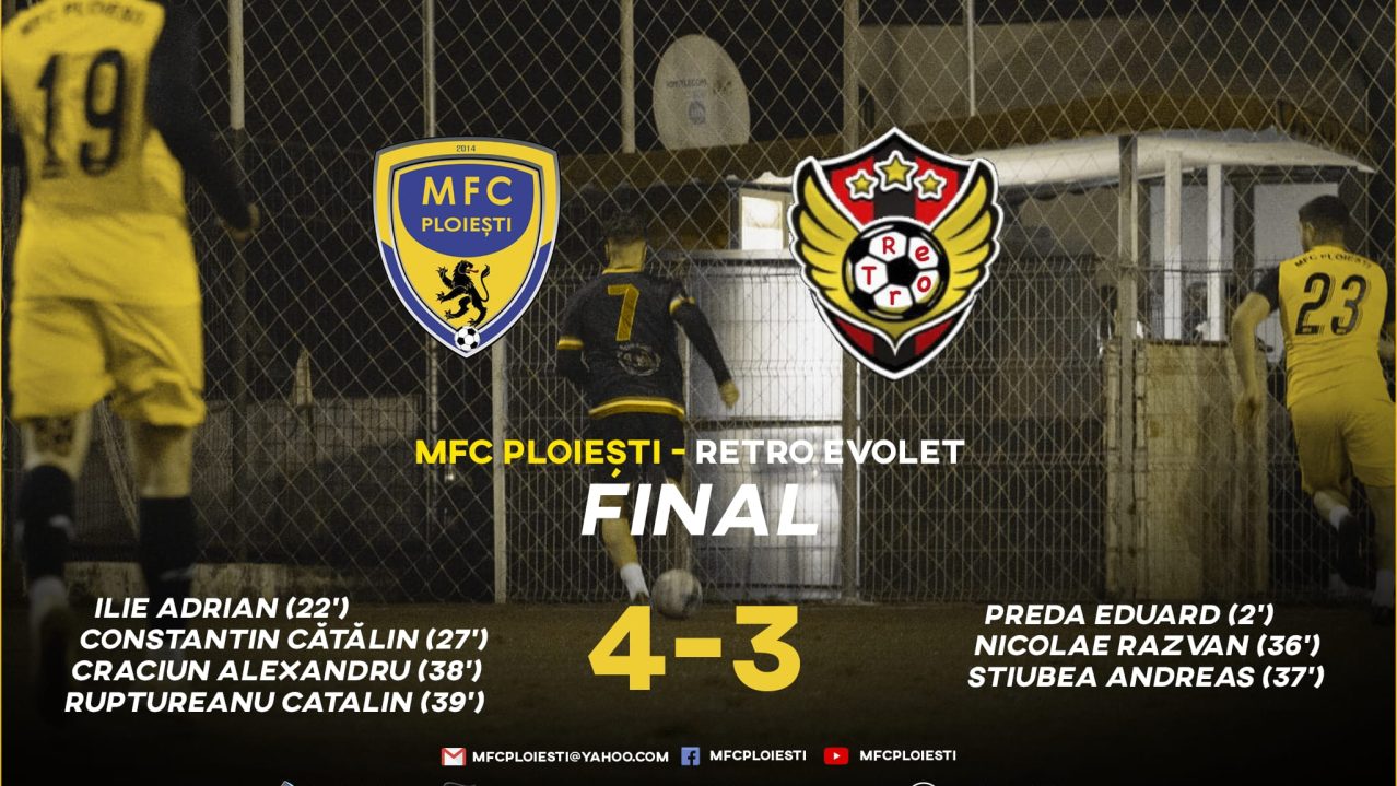Luni,28 martie 2022, pe terenul 1 al Bazei Sportive Kiru Sport Ploiești, MFC Ploiești a întâlnit in cadrul echipei cu numărul 9 a Ligii A de Minifotbal din Prahova , pe Retro Evolet, intr-un meci spectaculos, cu multe ocazii…