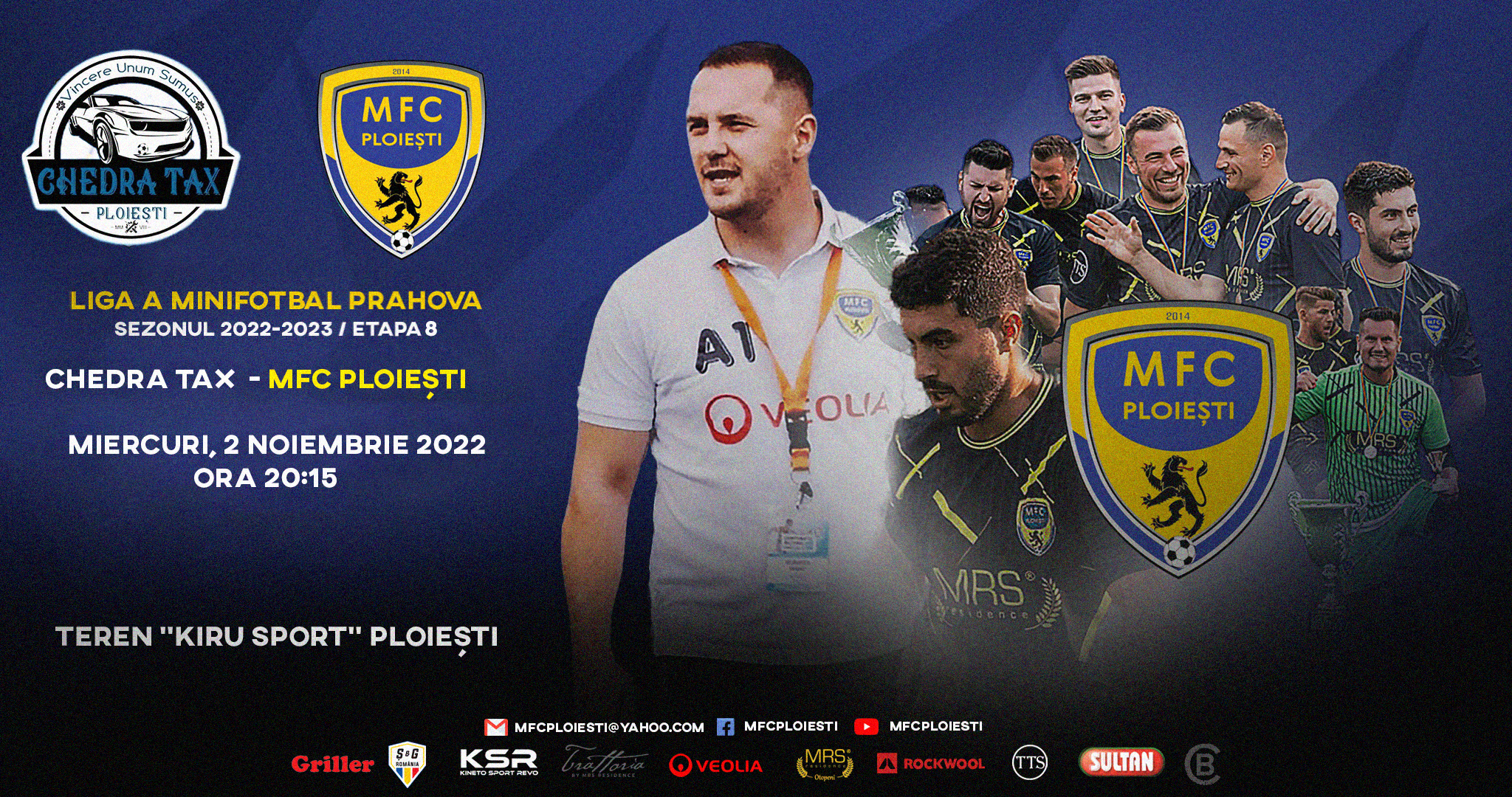 Miercuri, 2 noiembrie 2022, pe terenul 1 al Bazei Sportive Kiru Sport Ploiești, cu incepere de la ora 20.15, va avea loc derby-ul etapei cu numărul 8, ce le va pune față in față, pe cele mai consacrate echipe din minifotbalul prahovean actual, Chedra Tax si MFC Ploiești!