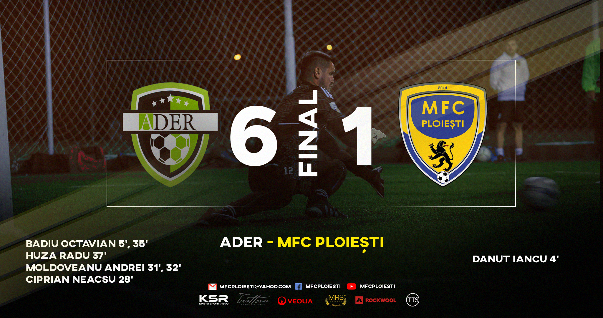 Miercuri, 21 septembrie 2022, pe terenul 1 al Bazei Sportive Kiru Sport Ploiești, de la ora 21.20, MFC Ploiești a întâlnit Ader, intr-un meci la capatul căruia, echipa pregătită de Gabriel Georgescu s-a văzut invinsă cu scorul de 6-1.
