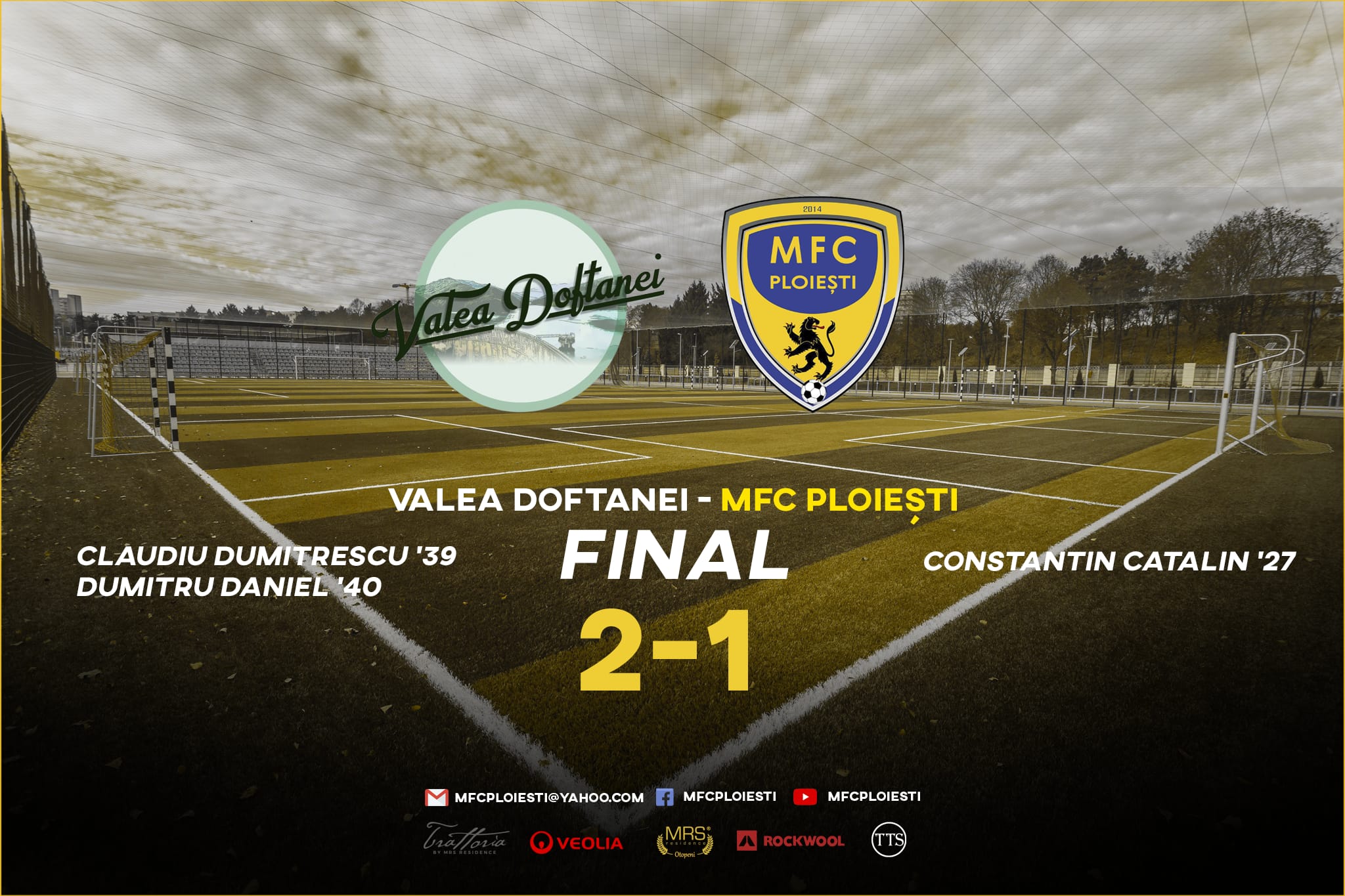 Repriza a două avea sa il aiba in prim-plan pe portarul Mihai Vanghele, care s-a arătat a fi intr-o forma de zile mari, reușind sa apere încercările adversarilor de a marca, fie prin Claudiu Dumitrescu, Dumitru Daniel sau Matei Marian. Intervențiile portarului nostru au dat încredere si siguranța grupului, iar MFC Ploiești deschide scorul in minutul 27, prin Constantin Cătălin, care a îndeplinit o simplă formalitate in fața porții, acolo unde l-a găsit pasa lui Valentin Sandu, iar scorul devenea 1-0 pentru galben-negrii lui Gabriel Georgescu. Golul venit din partea ploiestenilor n-a făcut decât să ii motiveze pe adversari, aceștia atacând in valuri, drept dovadă, in minutul 39, Claudiu Dumitrescu inscrie dintr-o lovitură liberă, aducând egalarea, insa meciul nu avea să se termine si in minutul 40, chiar la ultima fază a meciului, Alin Marcu face o greșeală uriașă in aparare si ii pasează cu exteriorul lui Dumitru Daniel, care inscrie si aduce victoria echipei sale, scorul final fiind 2-1 pentru Valea Doftanei!