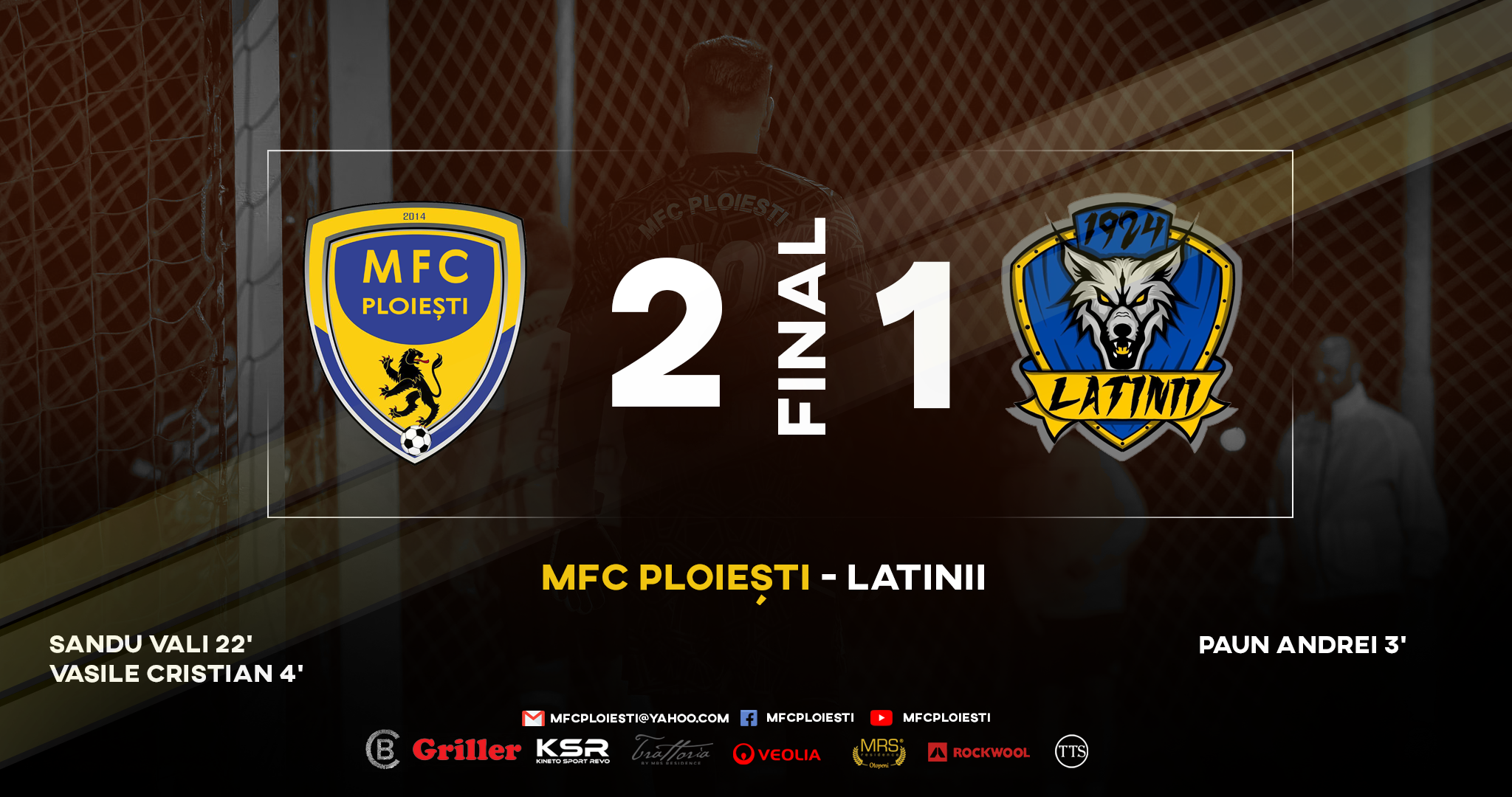 Miercuri, 26 noiembrie 2022, pe terenul 1 al Bazei Sportive Kiru Sport Ploiești MFC Ploiești a întâlnit in utlima etapă a turului de campionat pe Latinii 1924, intr-un meci care s-a încheiat cu victoria galben-negrilor lui Gabriel Georgescu si Dănuț Iancu, scor 2-1, grație golurilor marcate de Cristian Vasile si Valentin Sandu!