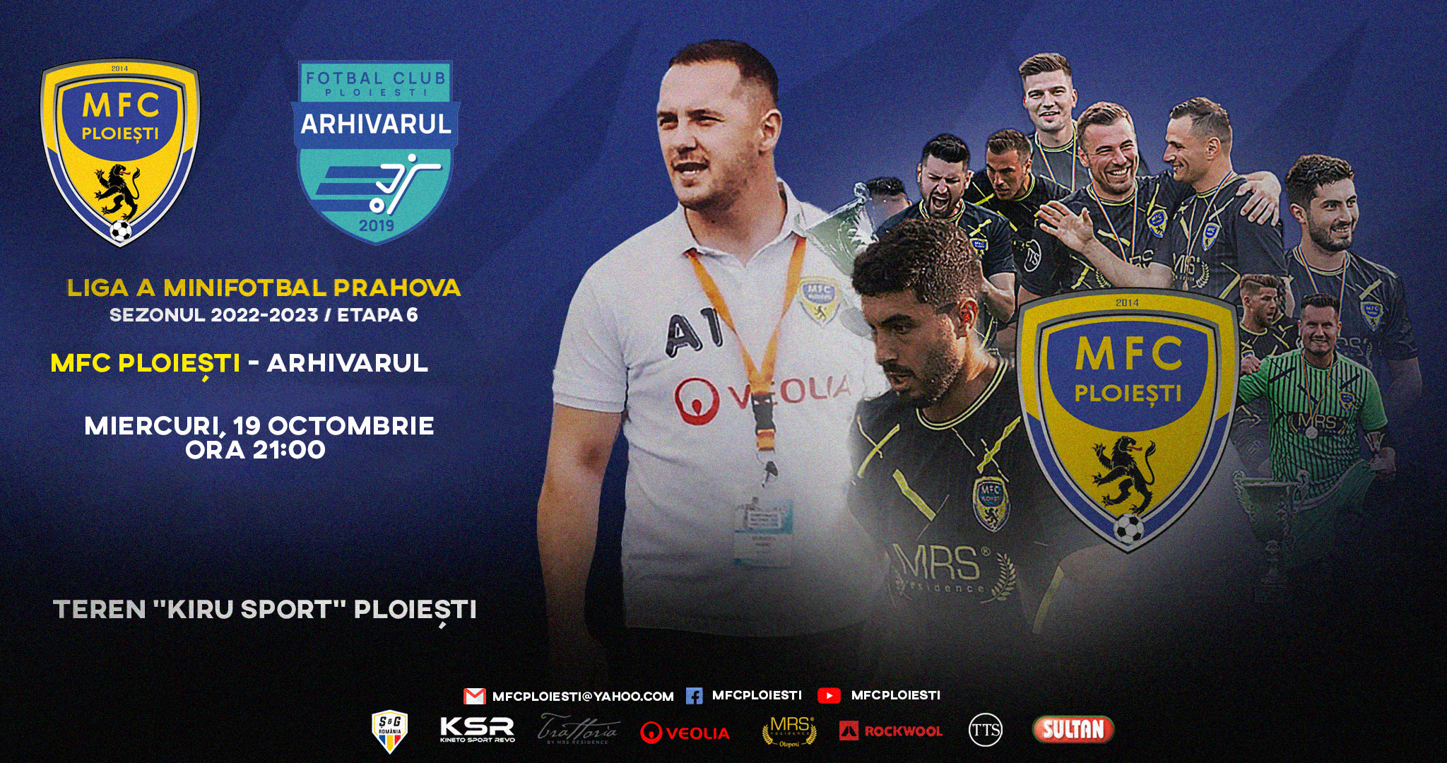 Miercuri, 19 octombrie 2022, pe terenul 1 al Bazei Sportive Kiru Sport Ploiești, MFC Ploiești va da piept cu nou-promovata Arhivarul, intr-un meci care va conta pentru etapa 6 a Ligii A MiniFotbal Prahova si care va avea fluierul de start la ora 21.00.