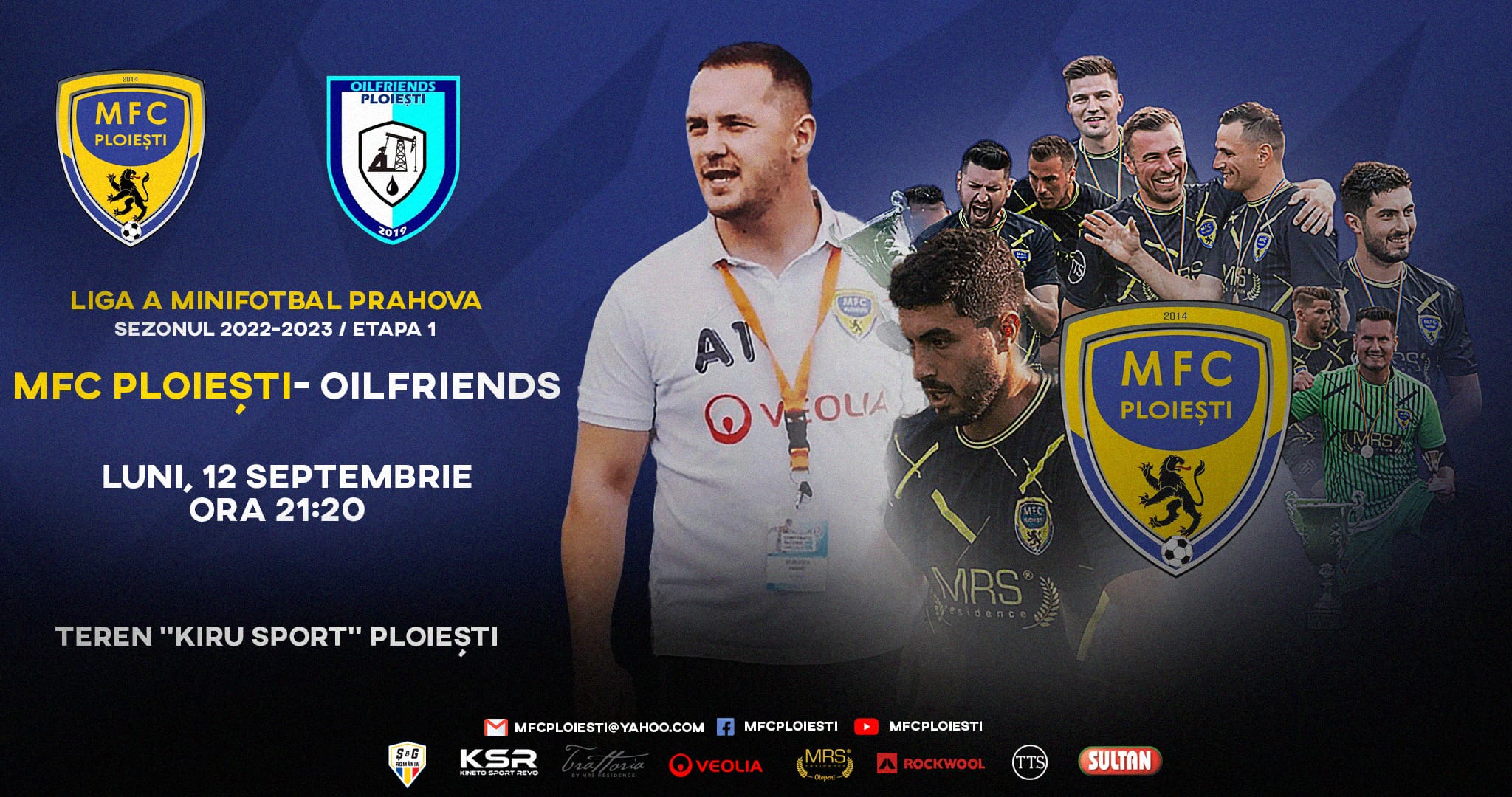 MFC Ploiești întâlnește nou-promovata Oilfriends Ploiești intr-un meci care va conta pentru Etapa 1 a Ligii A MiniFotbal Prahova si care va avea loc luni, 12 septembrie 2022, ora 21.20 pe Terenul 1 al Bazei Sportive Kiru Sport Ploiești.
