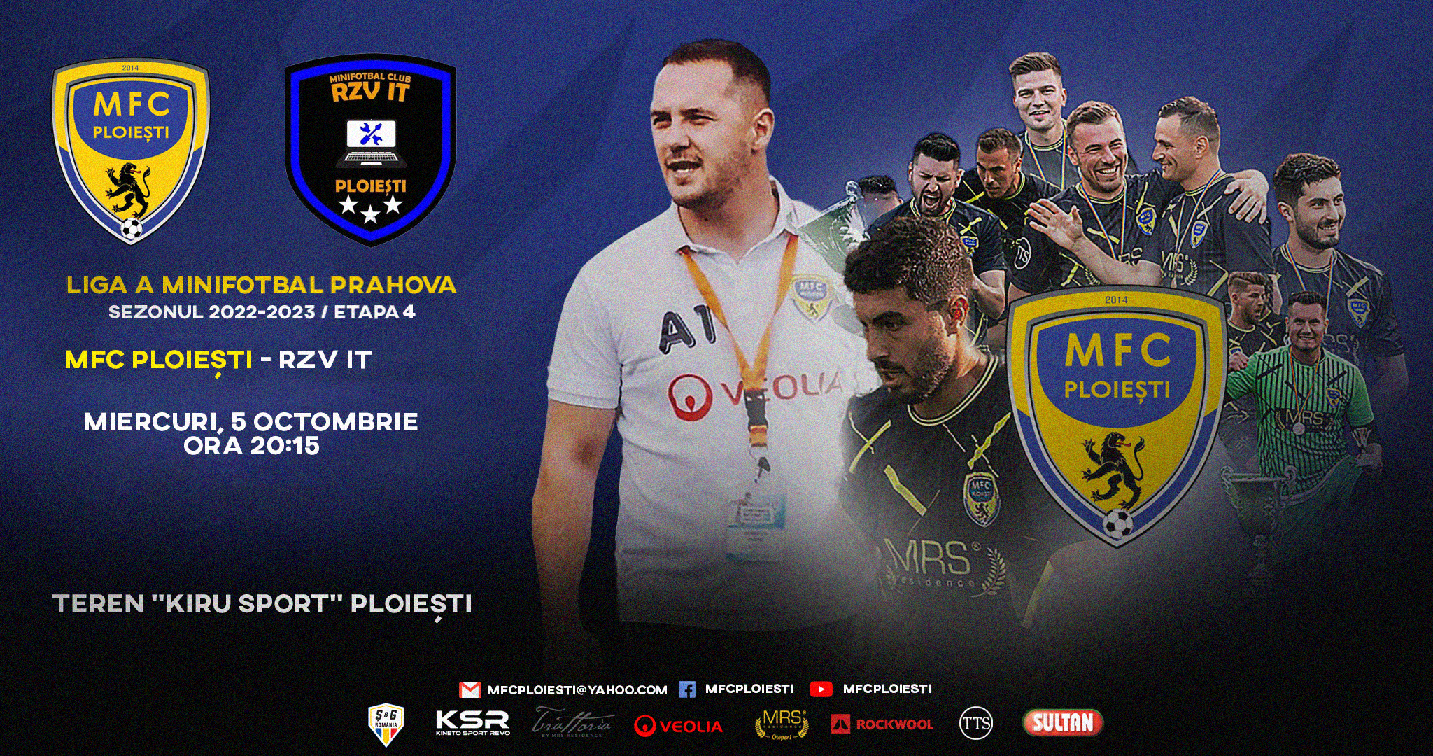 Miercuri, 5 octombrie 2022, la Baza Sportiva Kiru Sport Ploiești, de la ora 20.15, MFC Ploiești întâlnește lanterna roșie a campionatului de MiniFotbal Prahova, RZV IT într-un meci care va conta pentru Etapa 4 – Liga A.