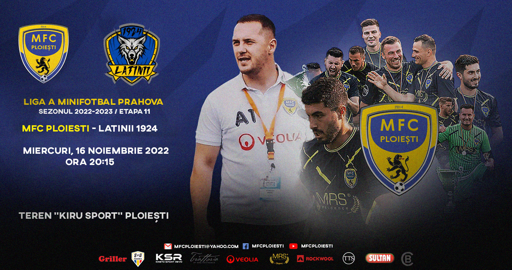 Miercuri, 16 noiembrie 2022, de la ora 20.15, pe terenul 1 al Bazei Sportive Kiru Sport Ploiești, MFC Ploiești întâlnește Latinii 1924, intr-un meci care va conta pentru etapa cu numarul 11 a Ligii A de MiniFotbal Prahova, ultima din turul campionatului!
